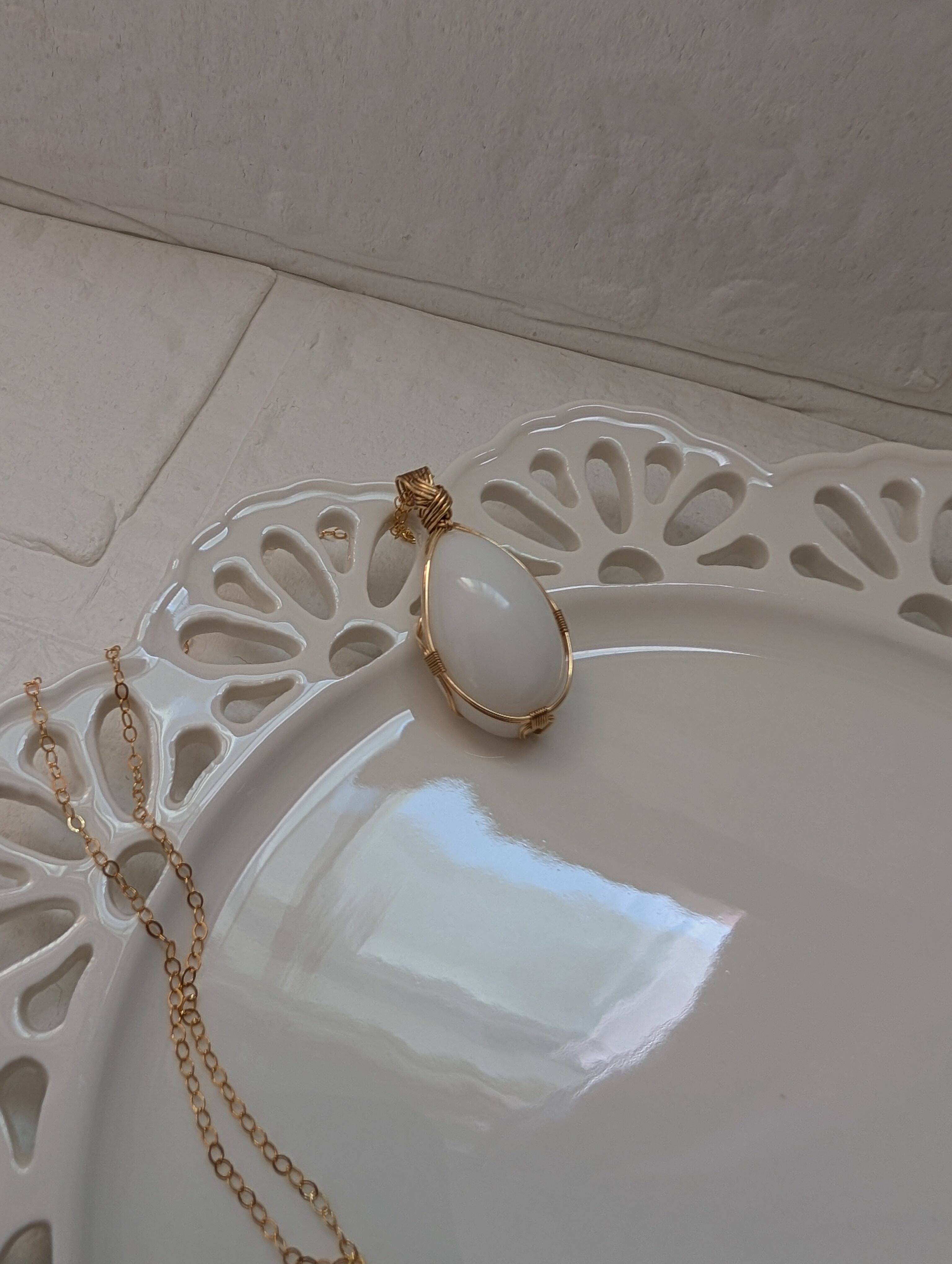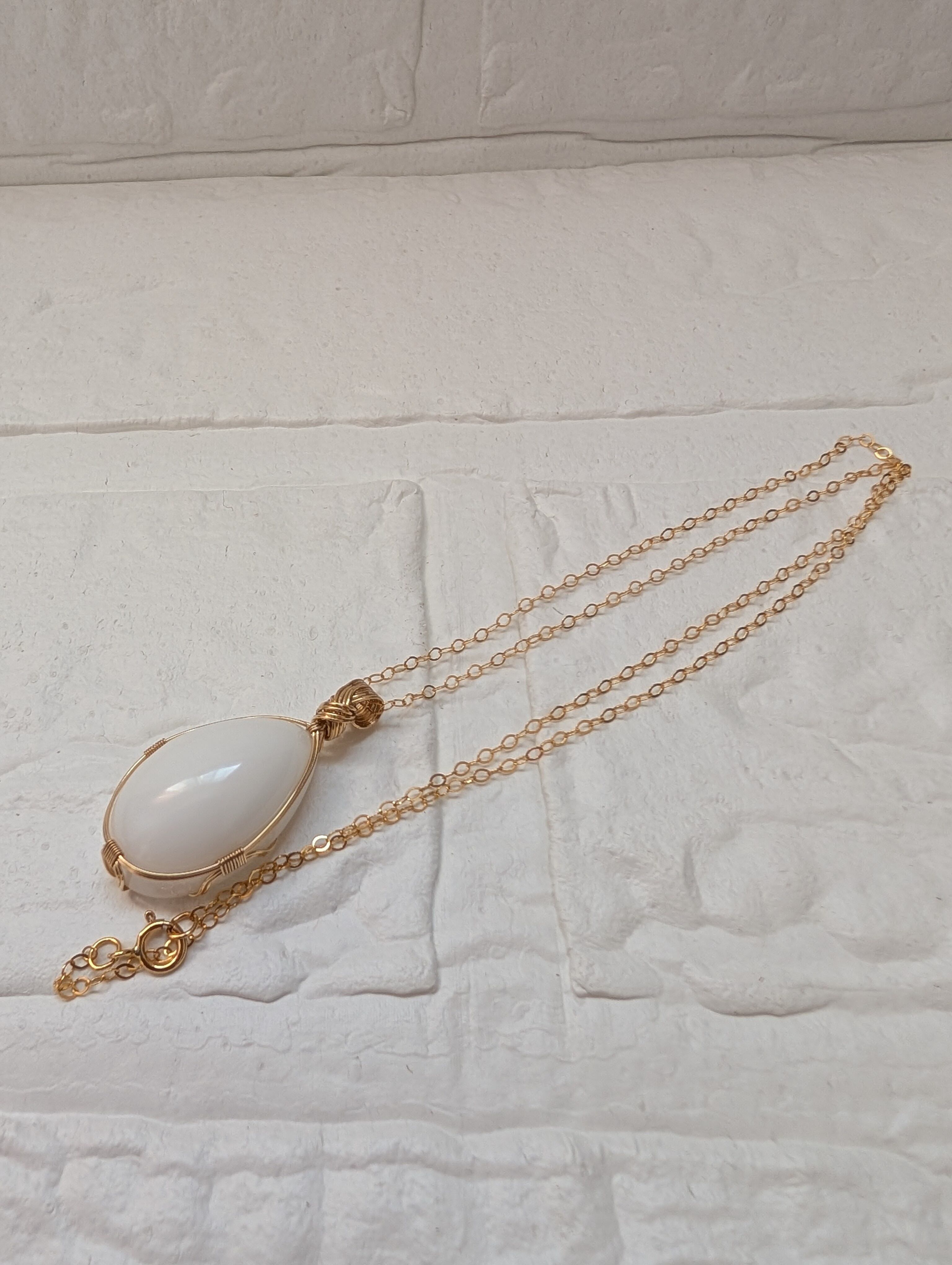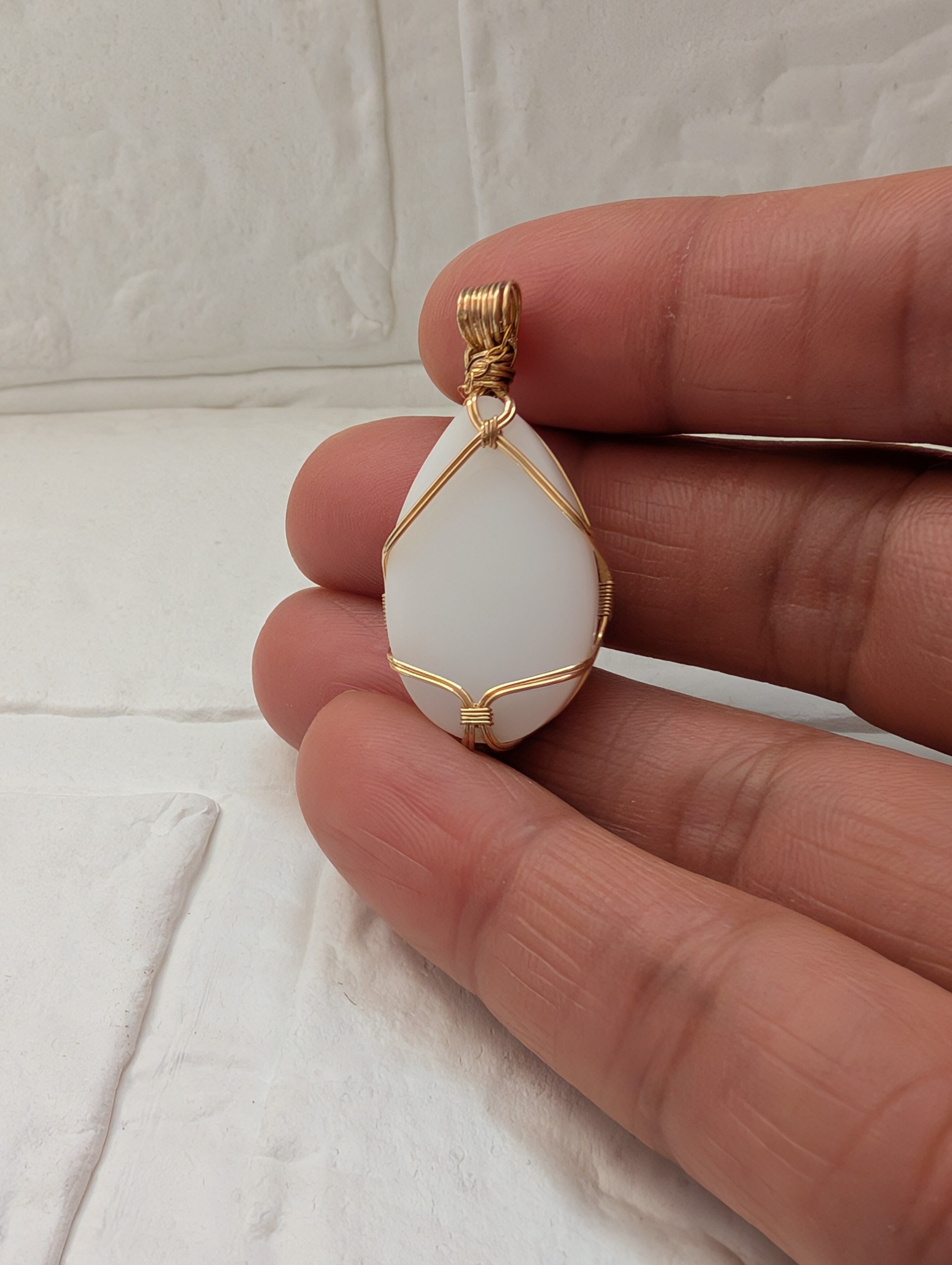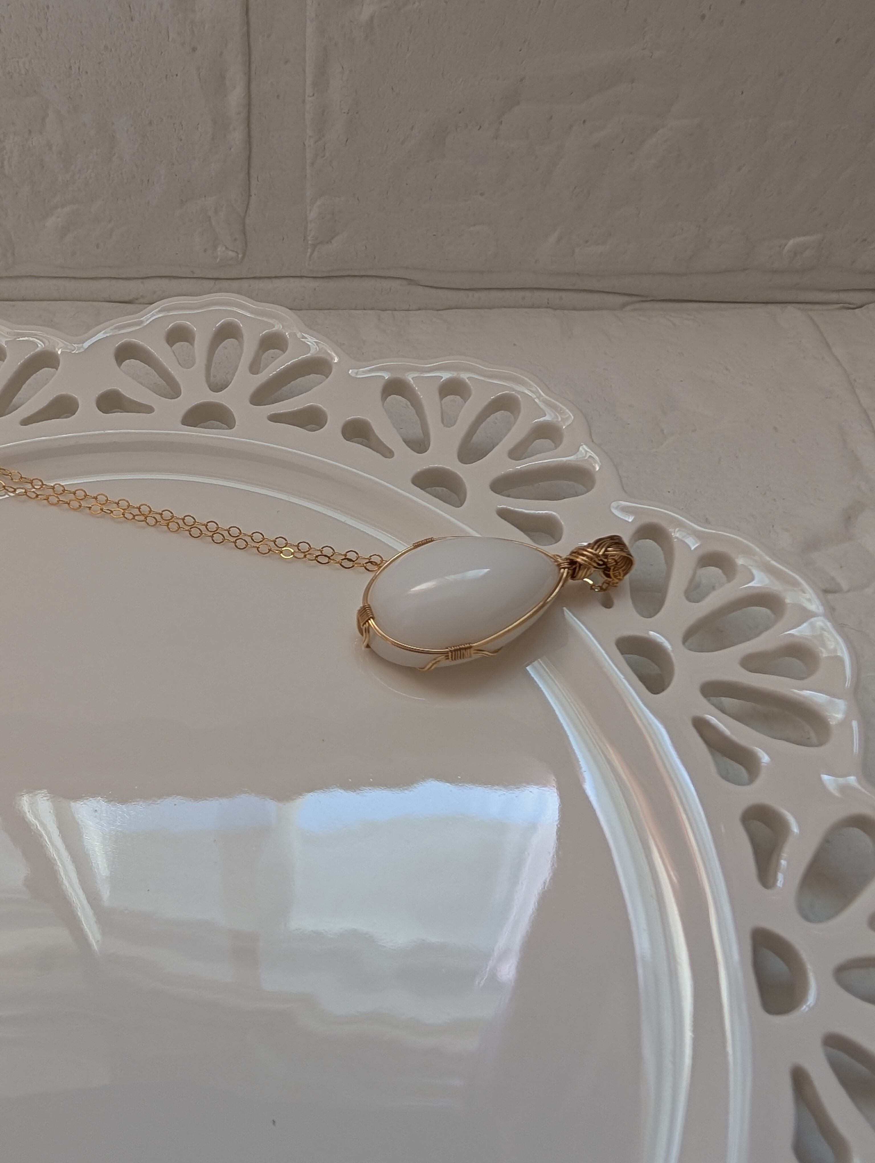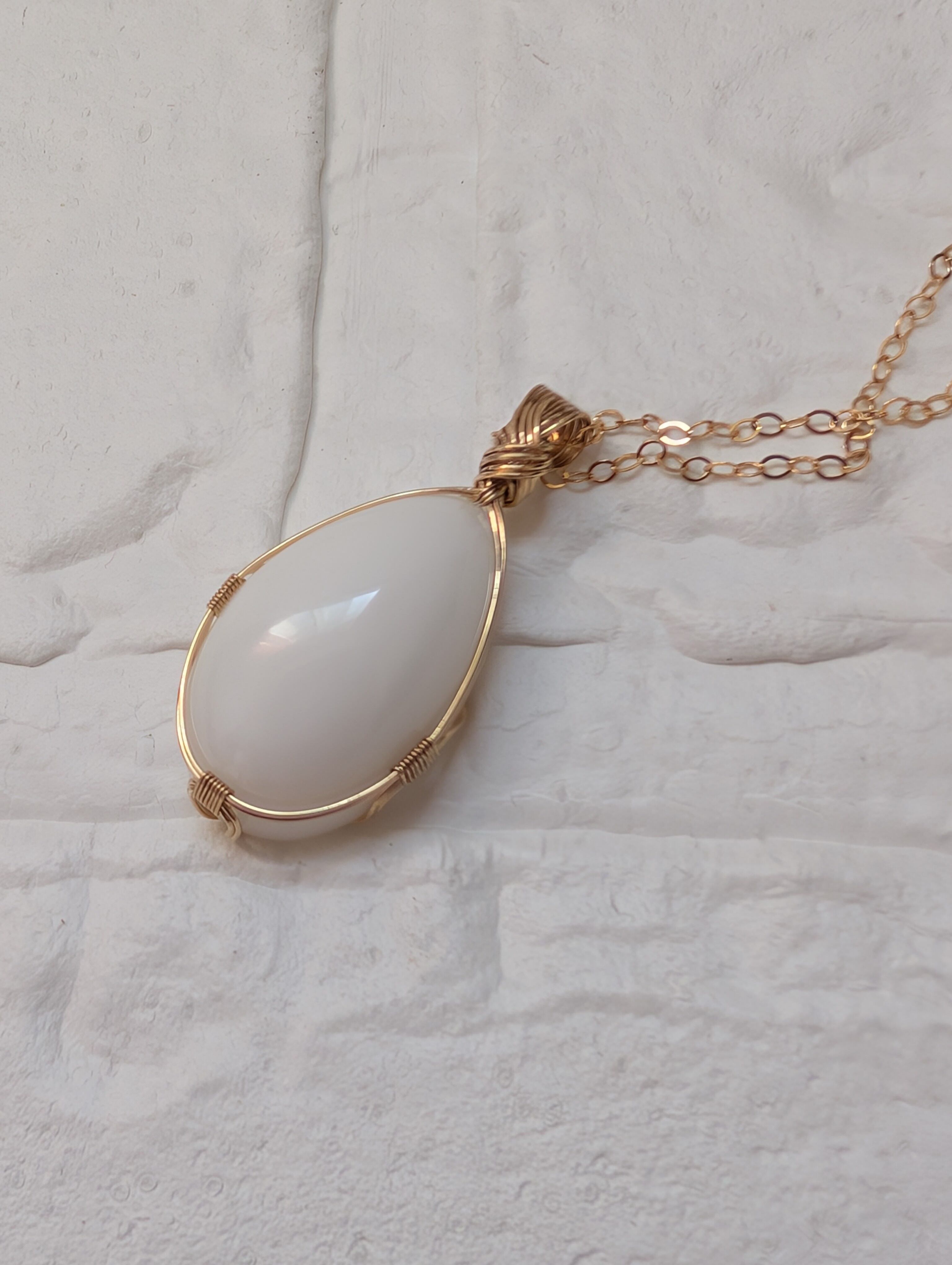 優しいホワイトのインドネシア産アンダラクリスタルを女神巻き®で仕上げました。
