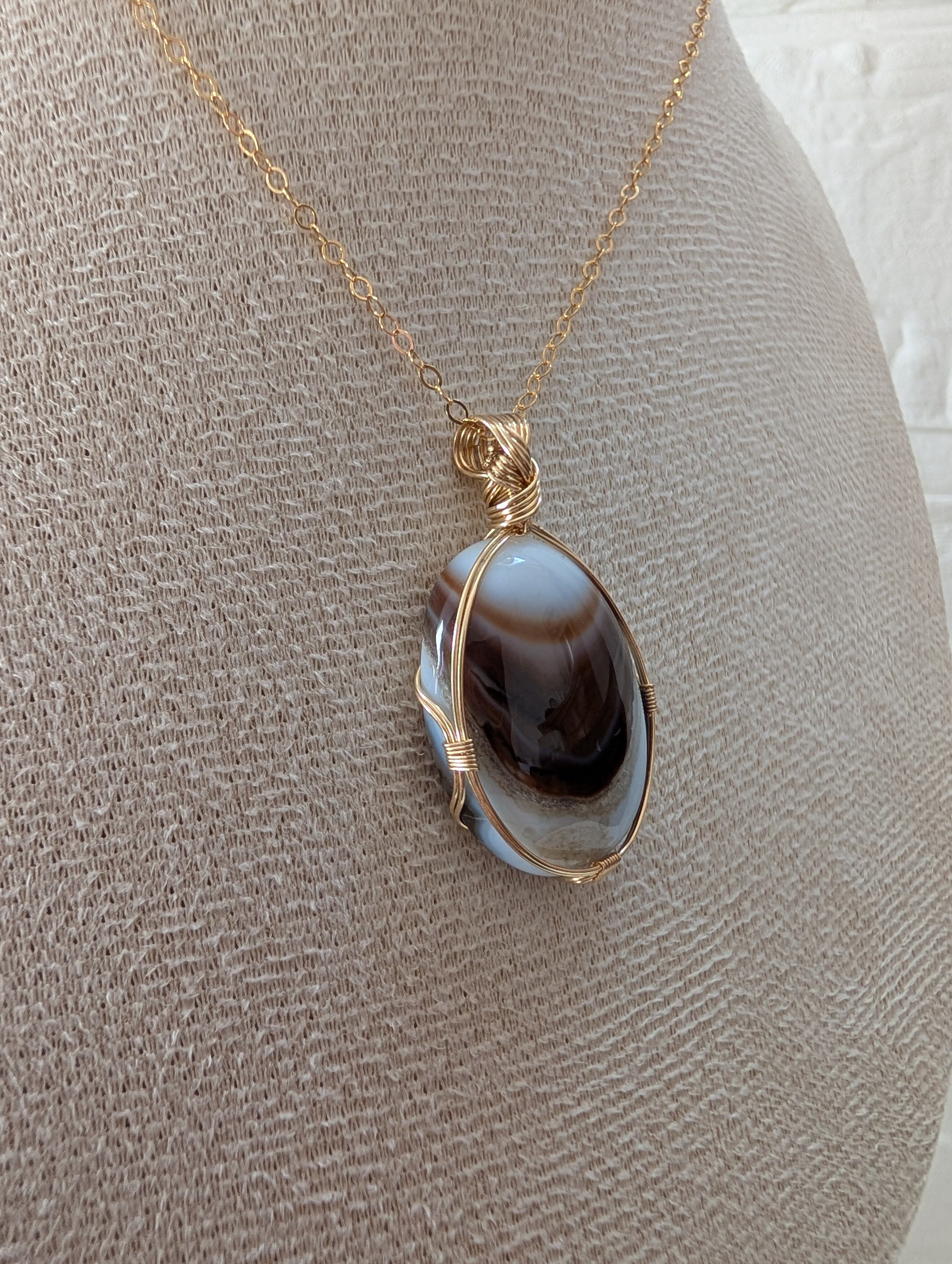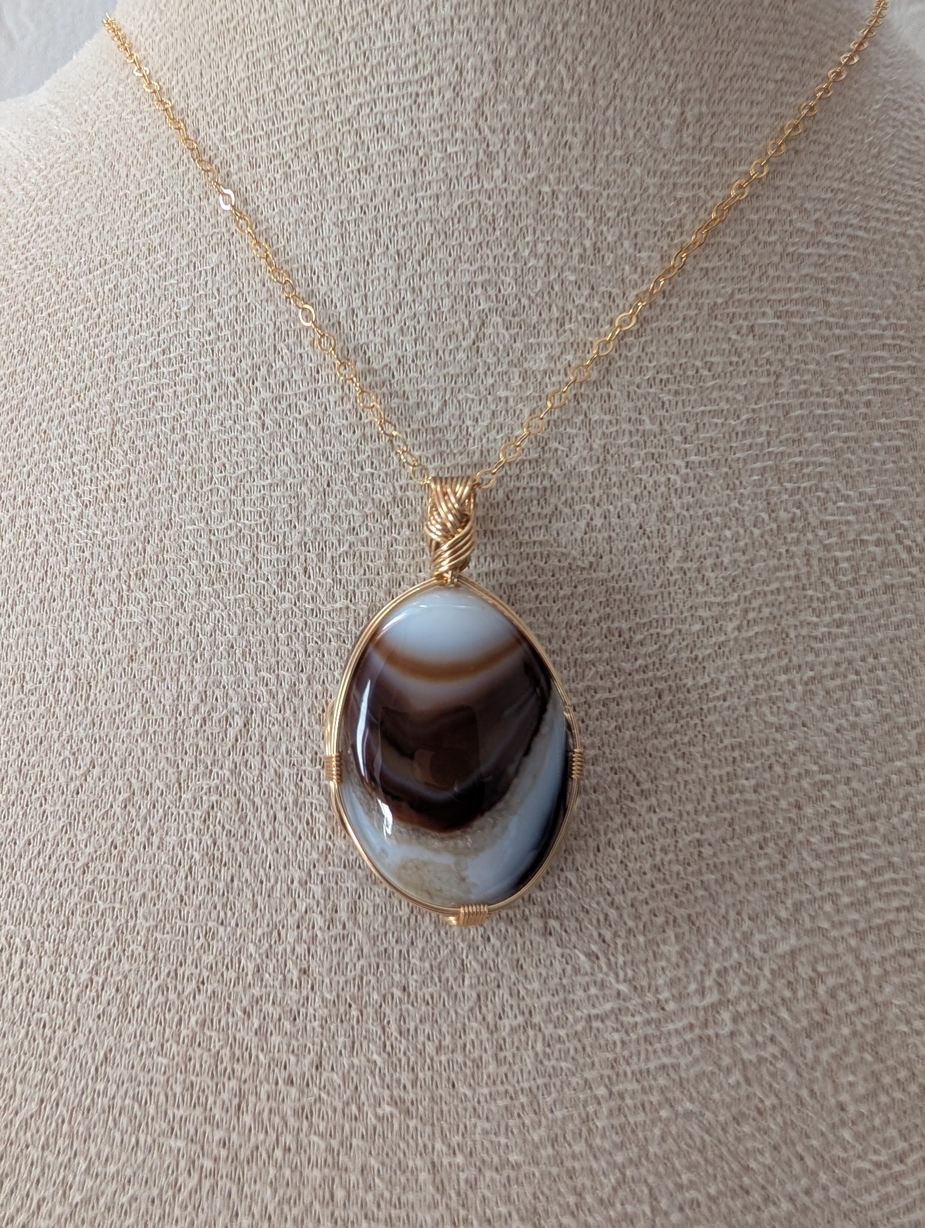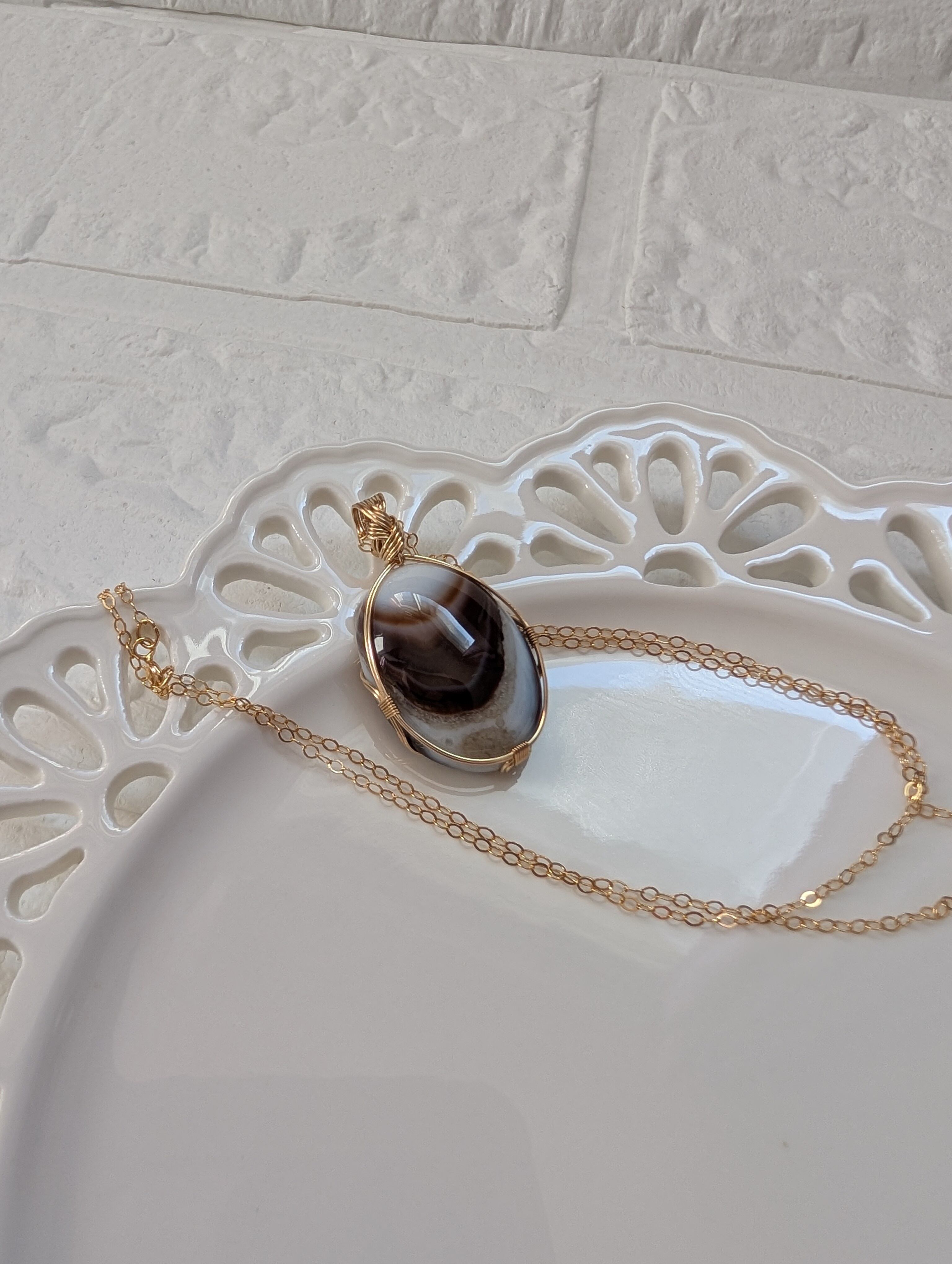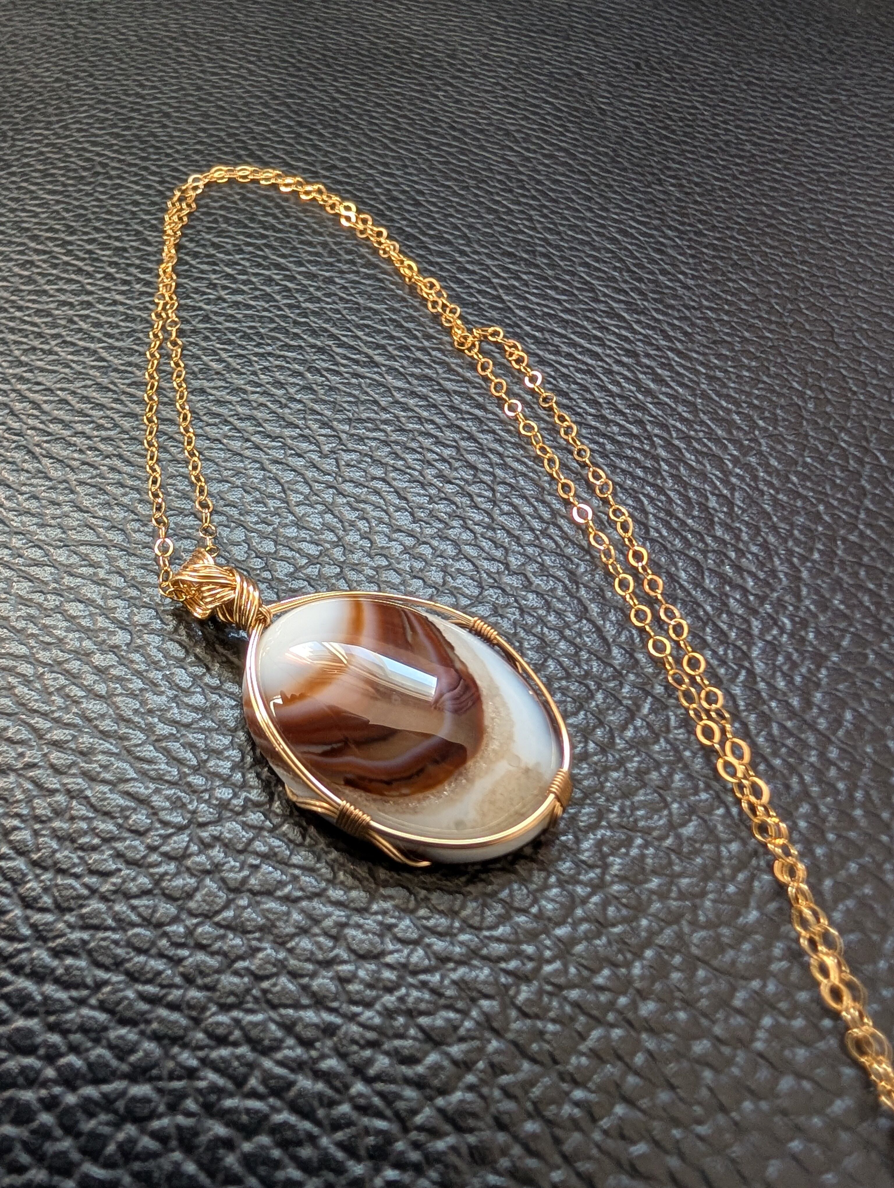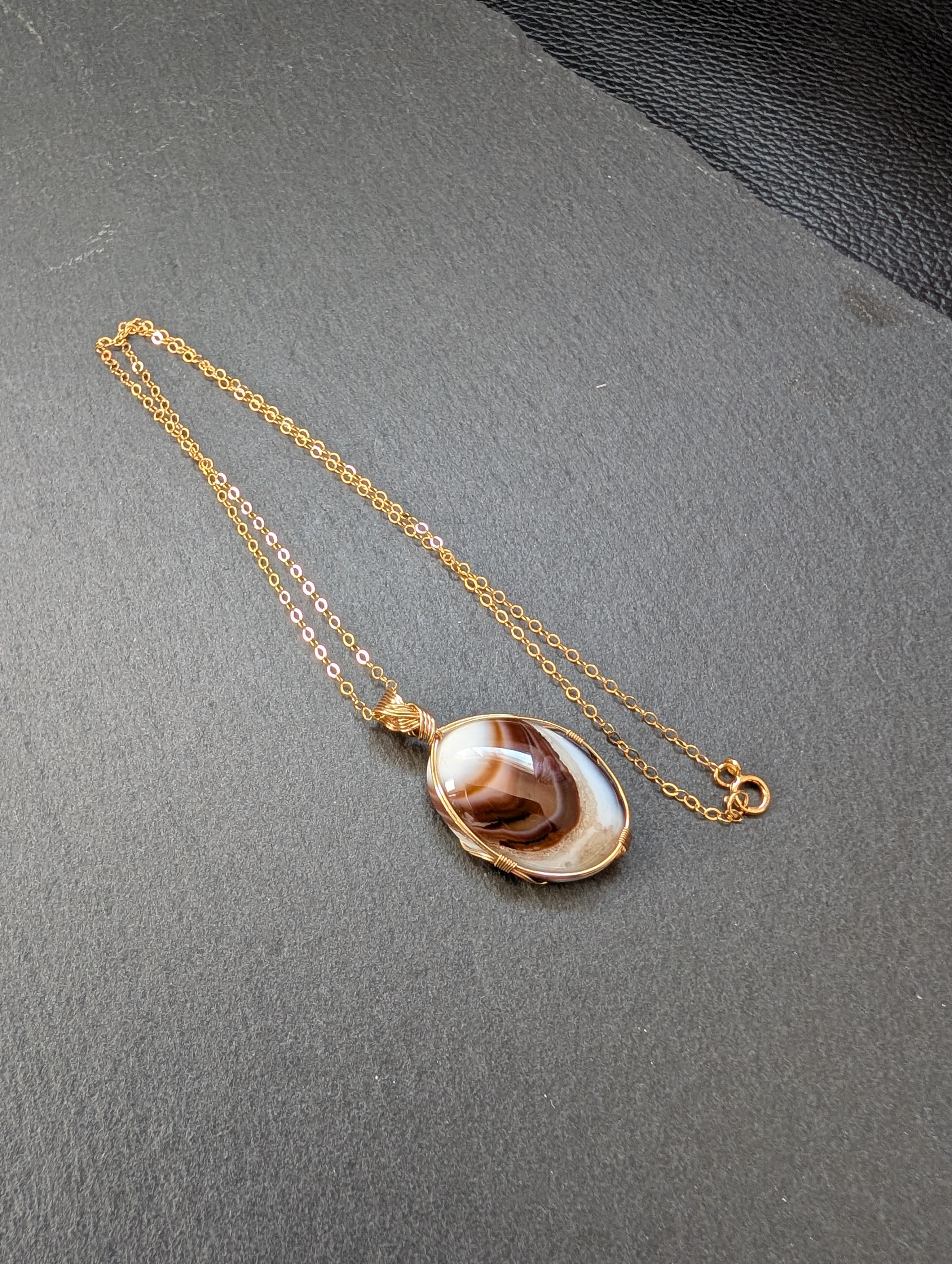 別名、成長を助ける石ともいわれるボツアナアゲートを女神巻®で仕上げました。